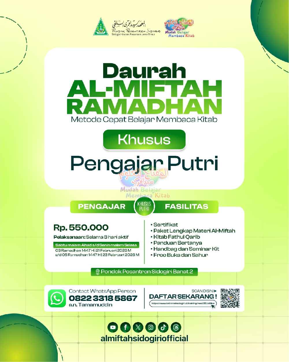 Selamat datang di program Training Al-Miftah Sidogiri khusus putrI!